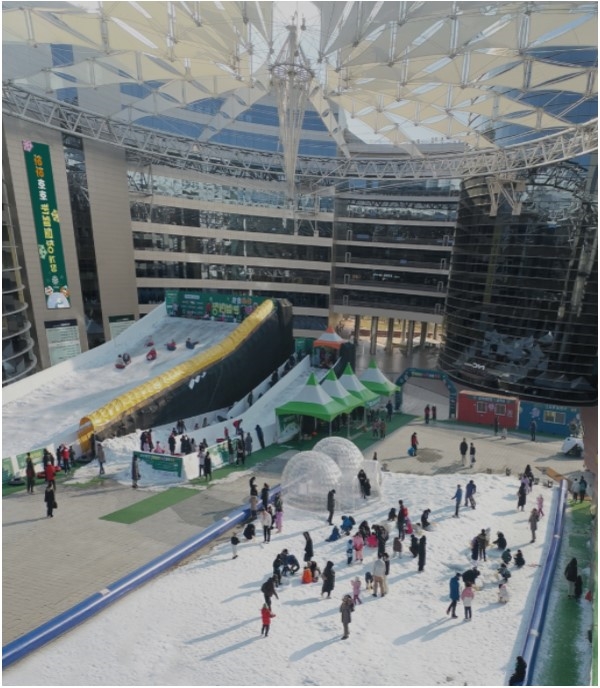 가로 15m, 세로 30m 규모의 전통 얼음 썰매장은 물론 이글루와 포토존도 설치된다. ▲ 컬링 등 겨울스포츠 ▲ 민속놀이 ▲ 이글루 북극 체험 등 체험 프로그램이 운영된다. 주말에는 마술쇼, 인형극 등 가족 공연을 더해진다.
